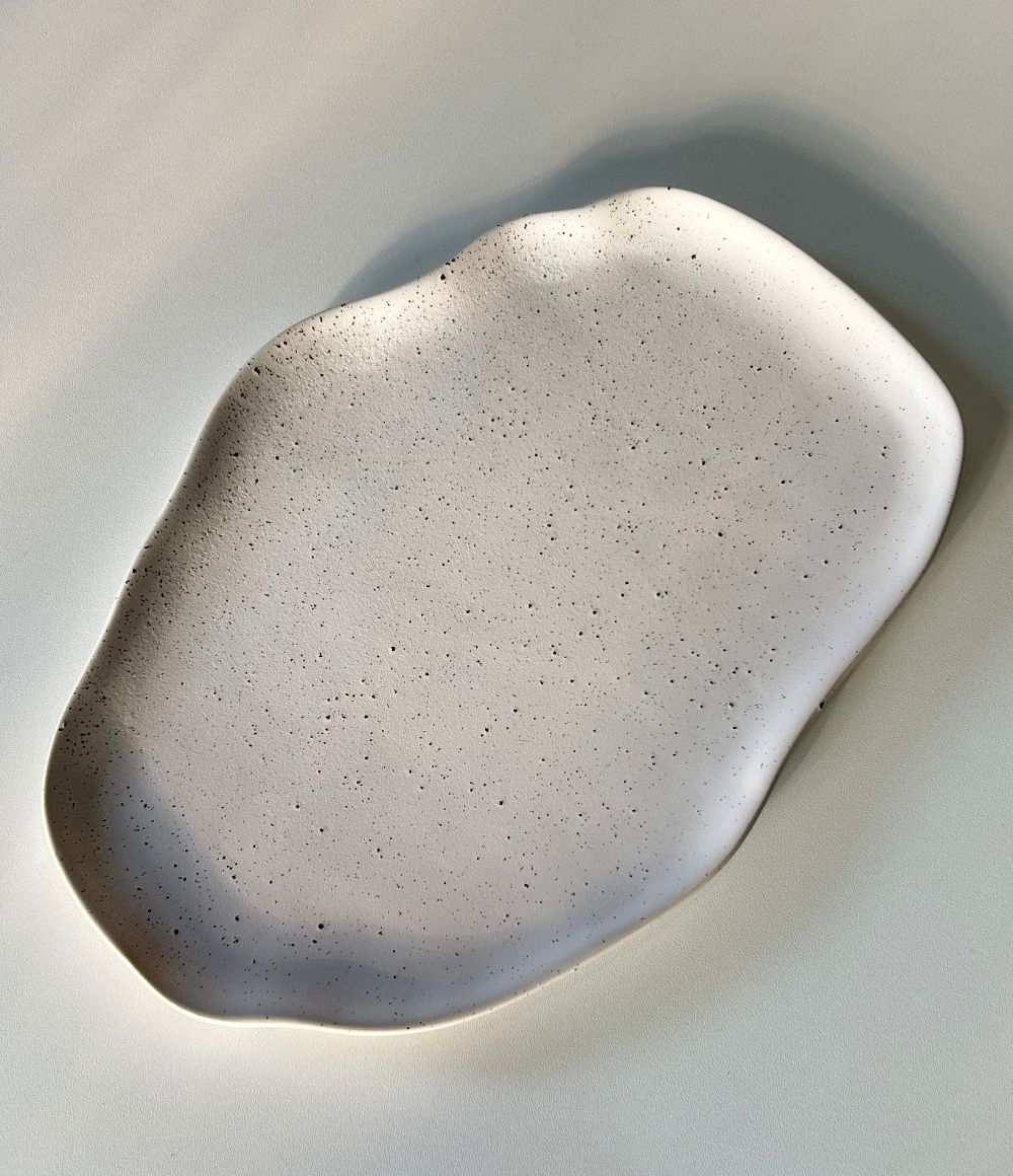 Bandeja Decorativa em Cerâmica Tonalidade Off-white.