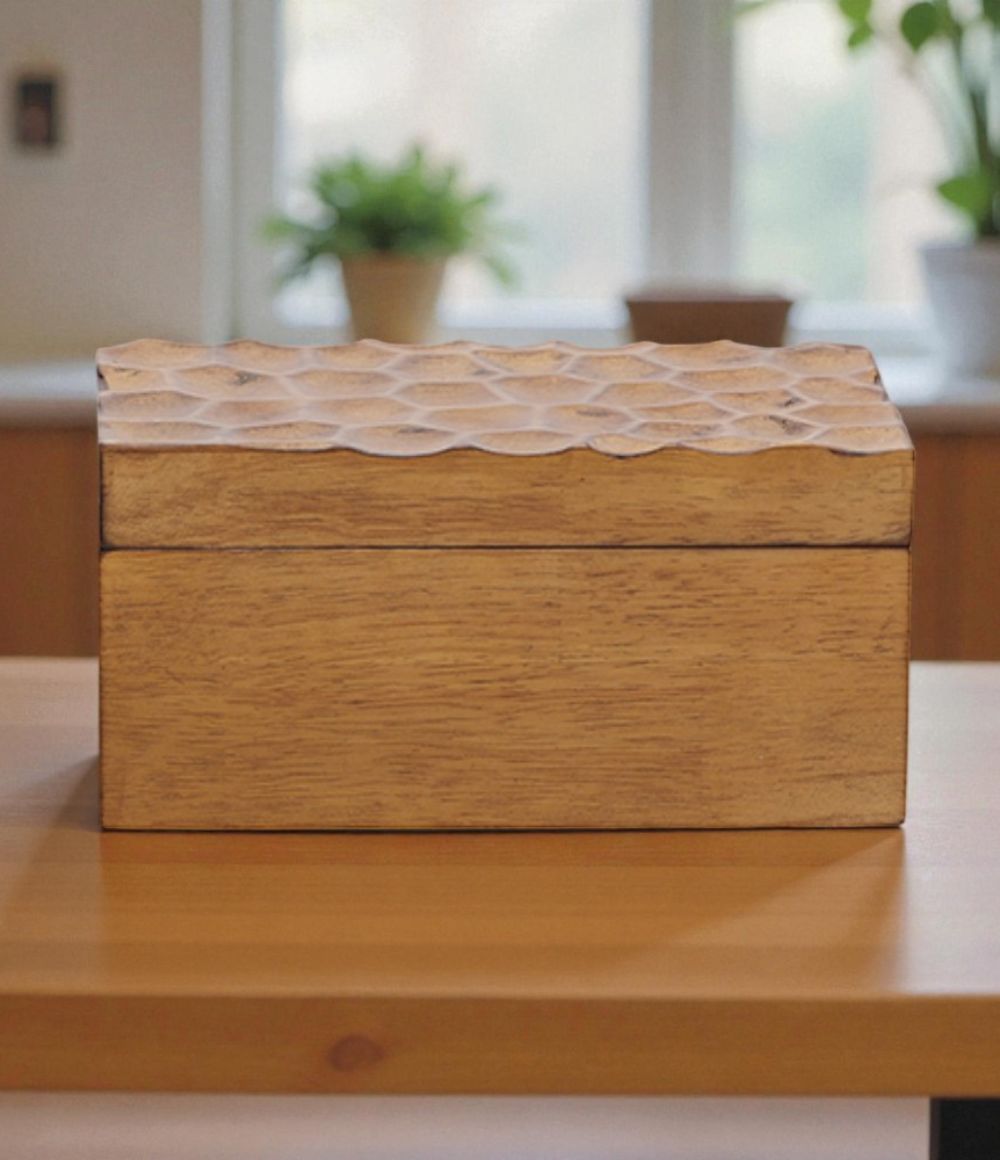 Caixa Decorativa e Organizadora de Madeira com Tampa Orgânica