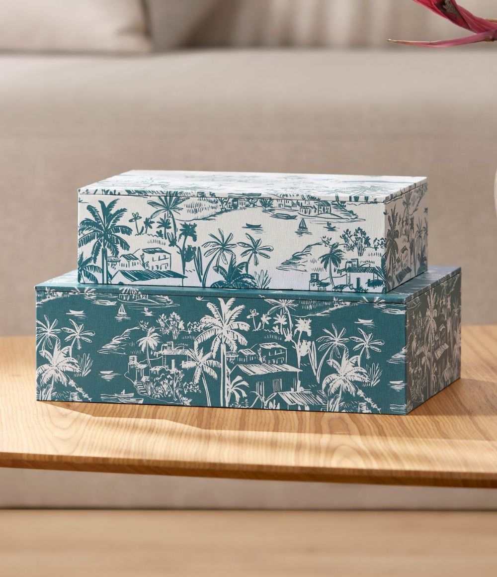 Caixas Decorativas e Organizadoras em MDF e Canvas Modelo Tropical Azul (2 peças)