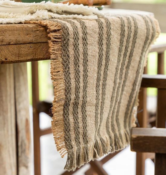 Caminho de Mesa Manali Verde em Algodão e Juta.