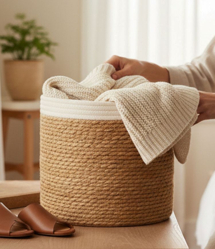 Cesto Decorativo Redondo em Fibra Natural e Algodão