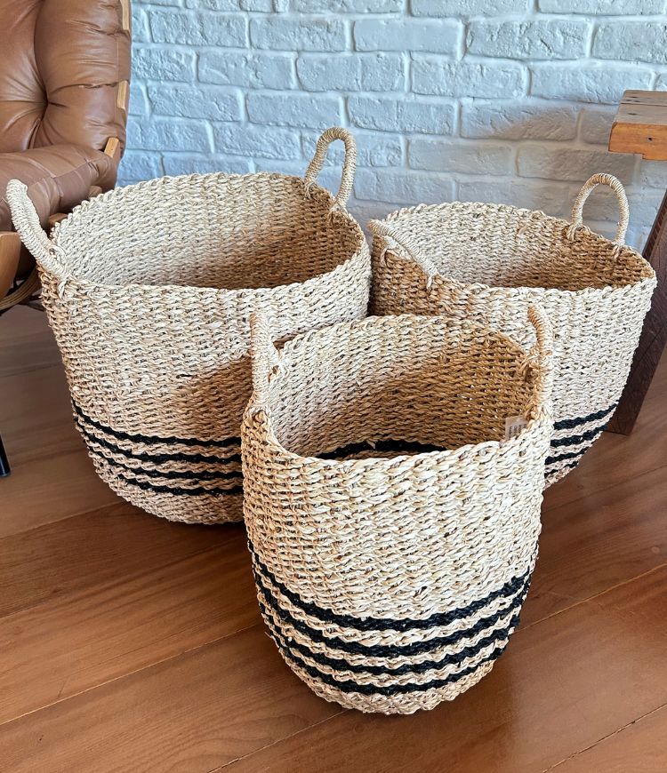 Com alças funcionais e um trabalho artesanal em fibra natural, os cestos combinam beleza com durabilidade. Sua estrutura resistente e acabamento impecável garantem um produto de alta qualidade, capaz de atender às necessidades do dia a dia sem perder a sofisticação.