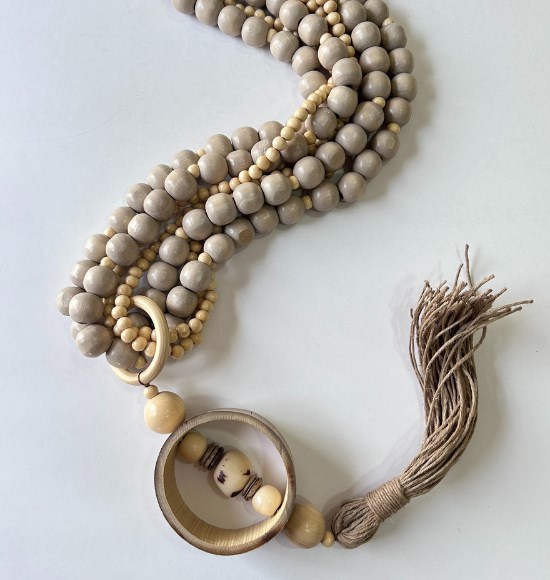 Colar Decorativo Grande em Contas de Madeira Clara e Sisal (1,10m)