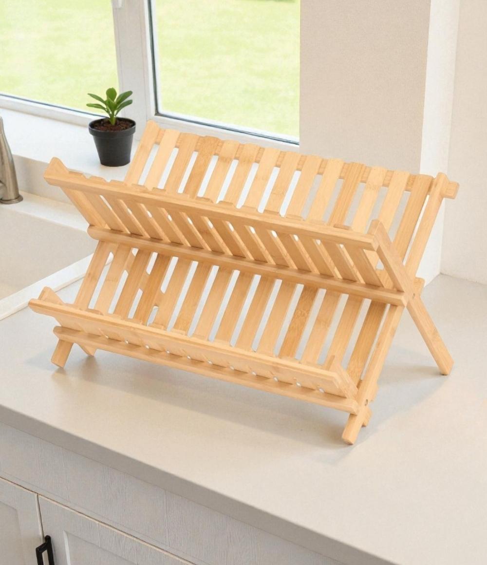 Produzido em bambu de alta qualidade, material sustentável e resistente, o escorredor de louças é durável e leve, o que facilita seu manuseio e armazenamento. A estrutura dobrável permite que ele seja guardado com facilidade quando não estiver em uso, sem ocupar espaço desnecessário.