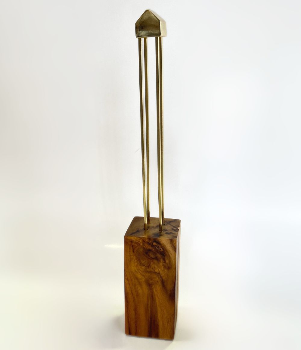 Palafita Decorativa Dourada em Bloco de Madeira