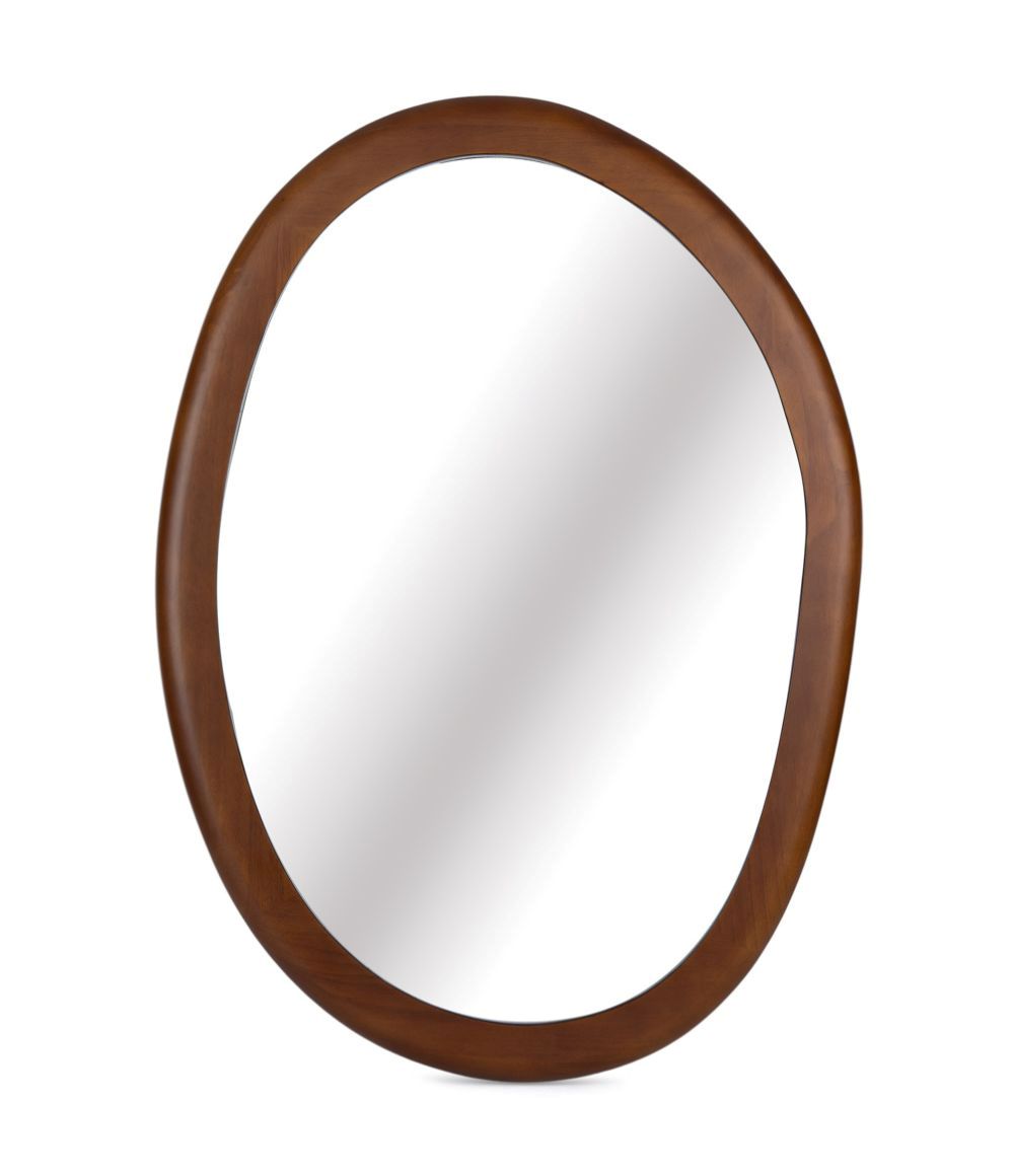 Espelho de Parede Orgânico com Moldura em Madeira Escura.