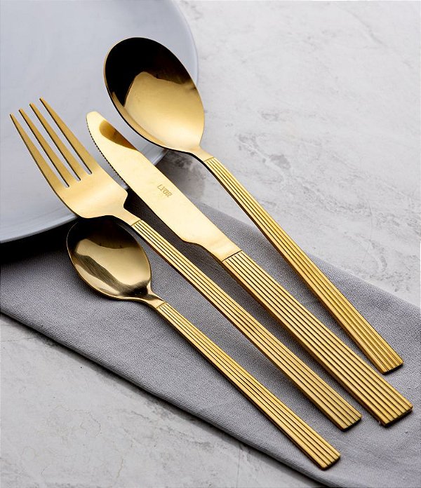 Faqueiro Dourado Athenas em Aço Inox (16 peças) | Lyor