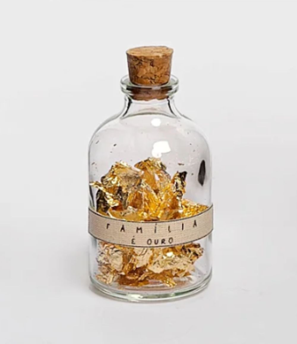 Garrafinha de Vidro "Família é Ouro".