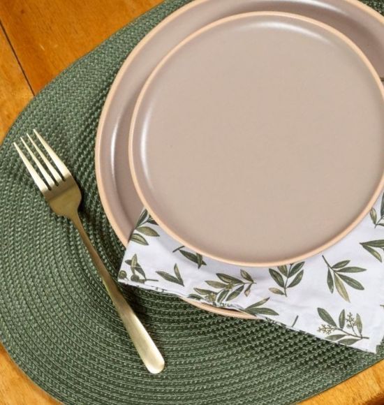 Jogo Americano Oval Luna Verde Oliva. Kit com 6 unidades.
