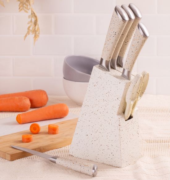 Jogo de Facas 06 Peças com Cepo Mármol.