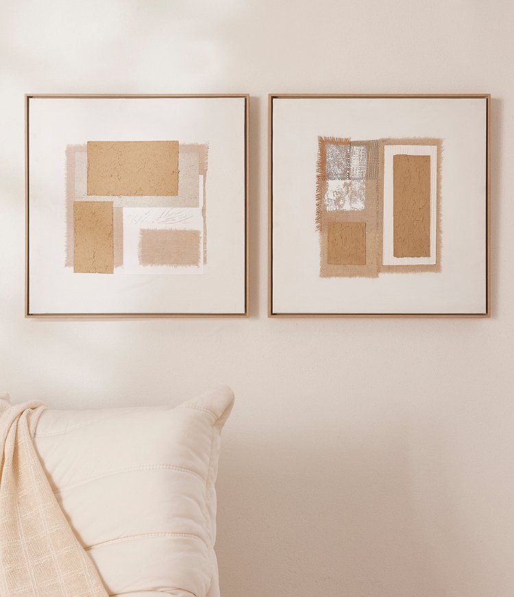 KIT com 2 Quadros Abstratos em Canvas e Linho.