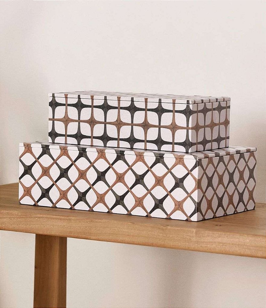Caixas Decorativas e Organizadoras em MDF e Canvas Modelo Retro (2 peças)