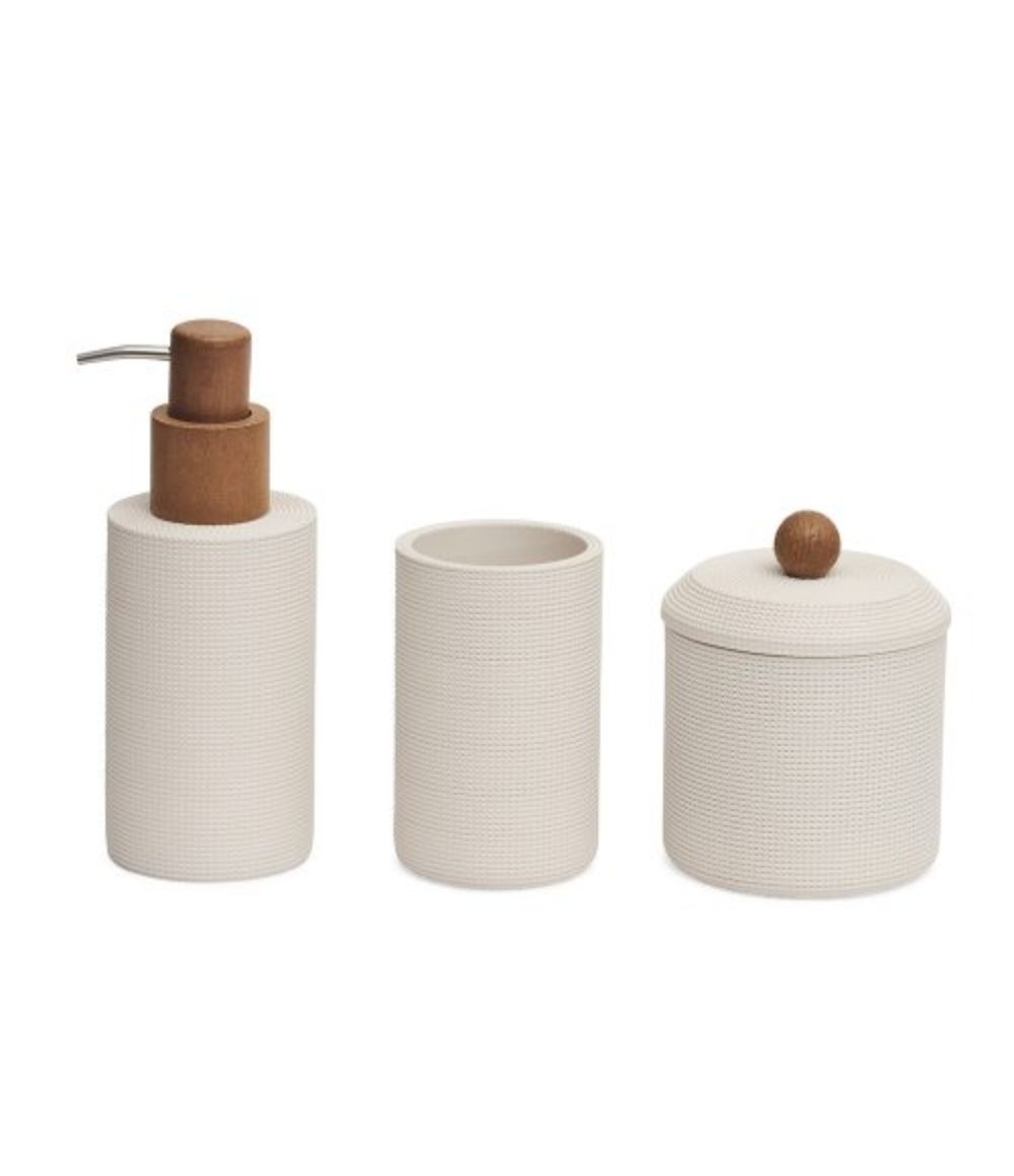Kit de Saboneteira Copo e Pote para Banheiro em Poliresina Branca (3 peças)
