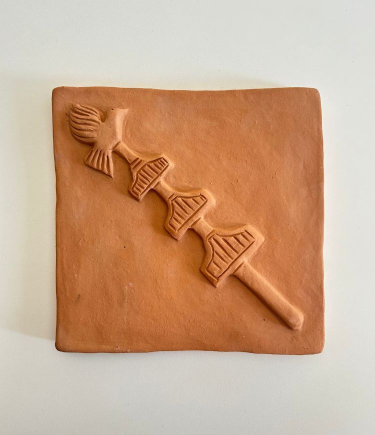 Placa de Barro para Parede Cajado de Oxalá | Coleção Orixás