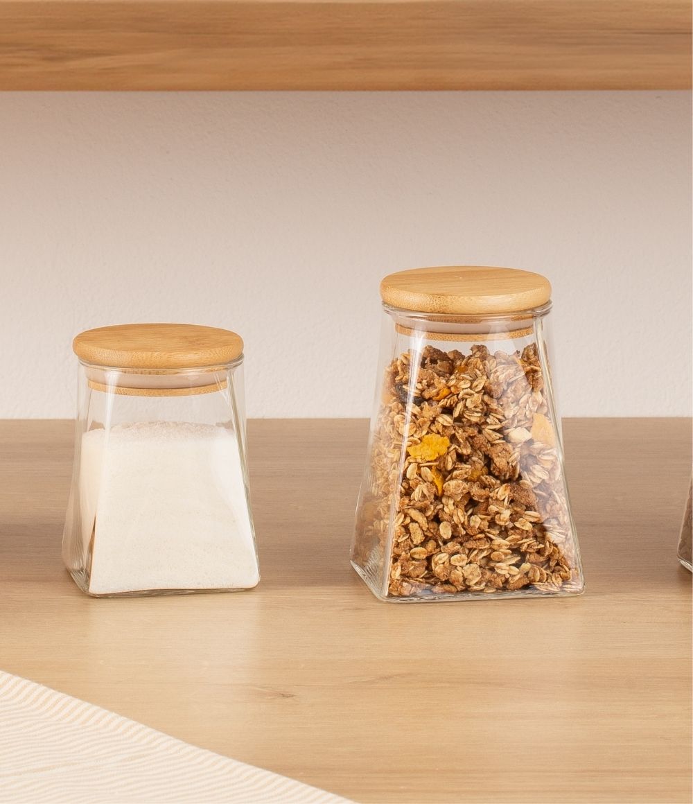 Pote Hermético de Vidro Base Quadrada com Tampa em Bambu (2 tamanhos)