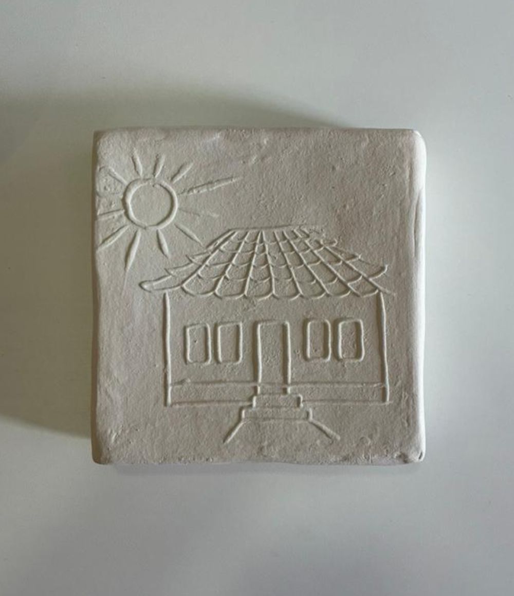 Tijolinho Decorativo de Barro Branco Casa e Sol II (15x15).