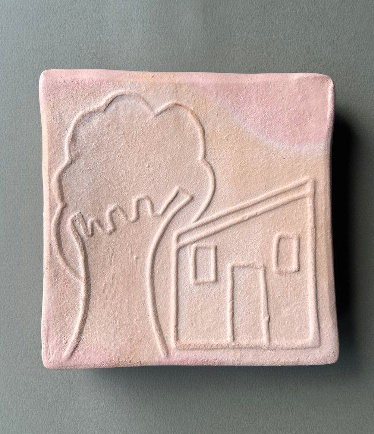 Tijolinho Decorativo de Barro Casa e Árvore (15x15).
