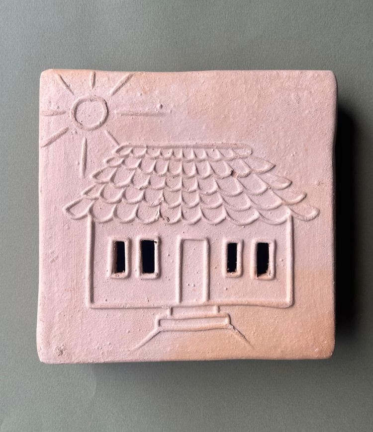 Tijolinho Decorativo de Barro Casa e Sol II (15x15).