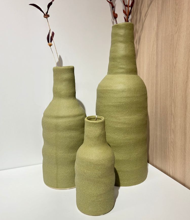 Trio de Vaso Decorativo Verde em Cerâmica | Mart