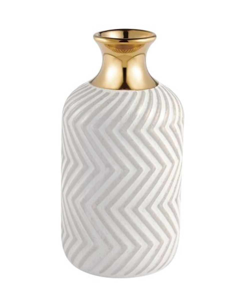 Vaso Decorativo de Cerâmica Chevron com Topo Dourado.