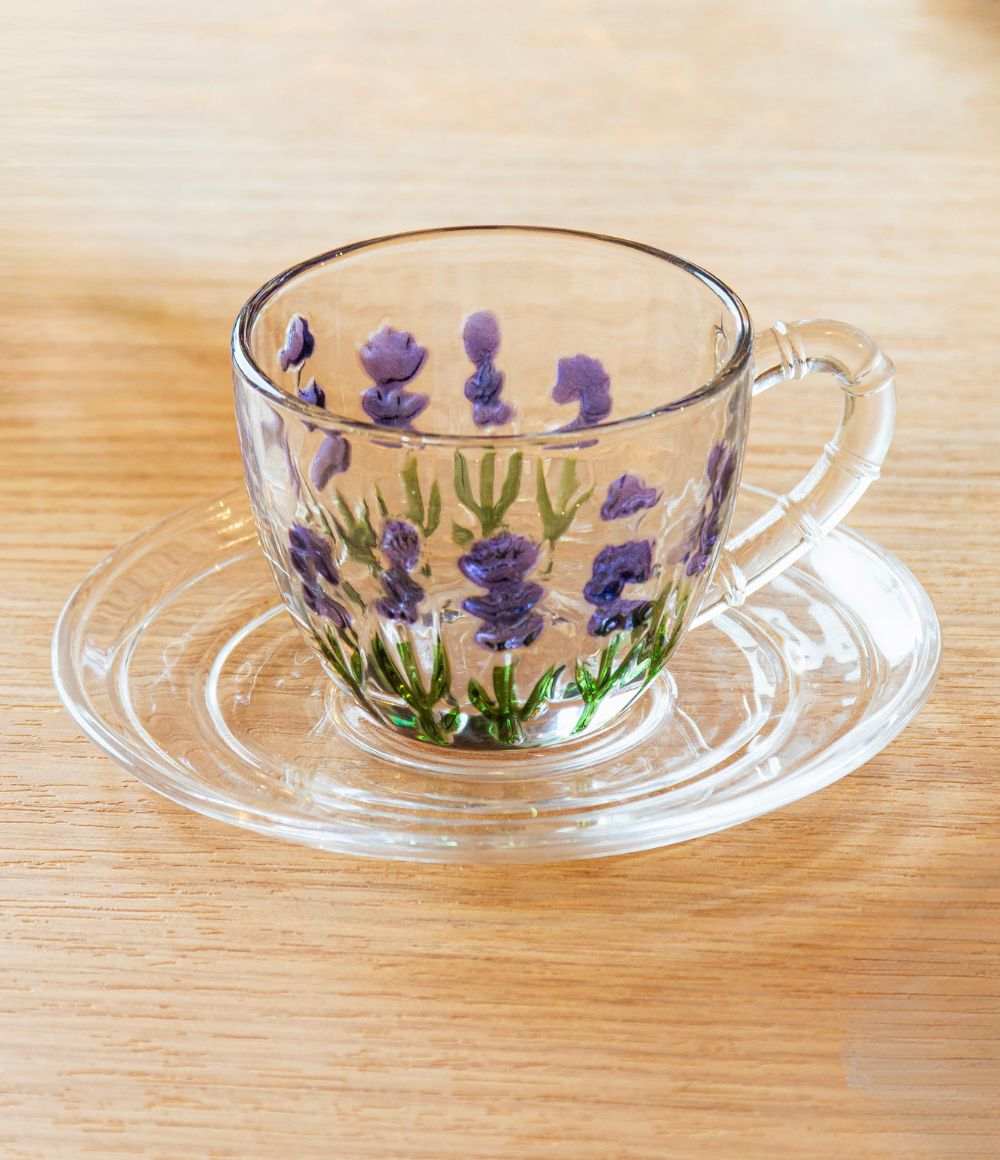 Xícara de Café com Pires Lavanda Hand Painting Cristal (80ml)